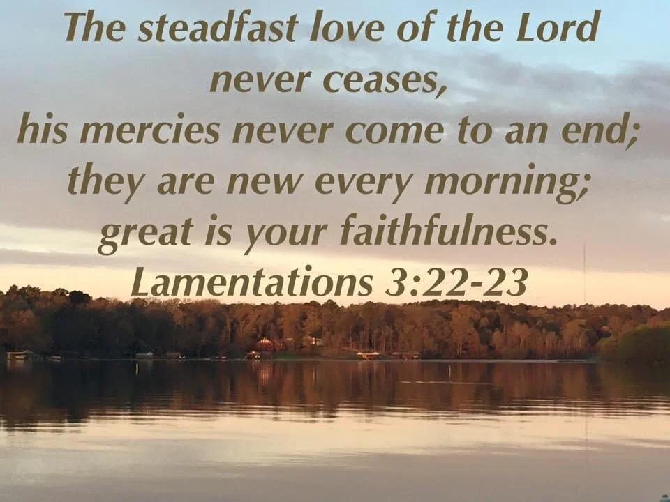 “The steadfast love of the Lord never ceases, his mercies never come to an end; they are new every morning;;great is your faithfulness.”