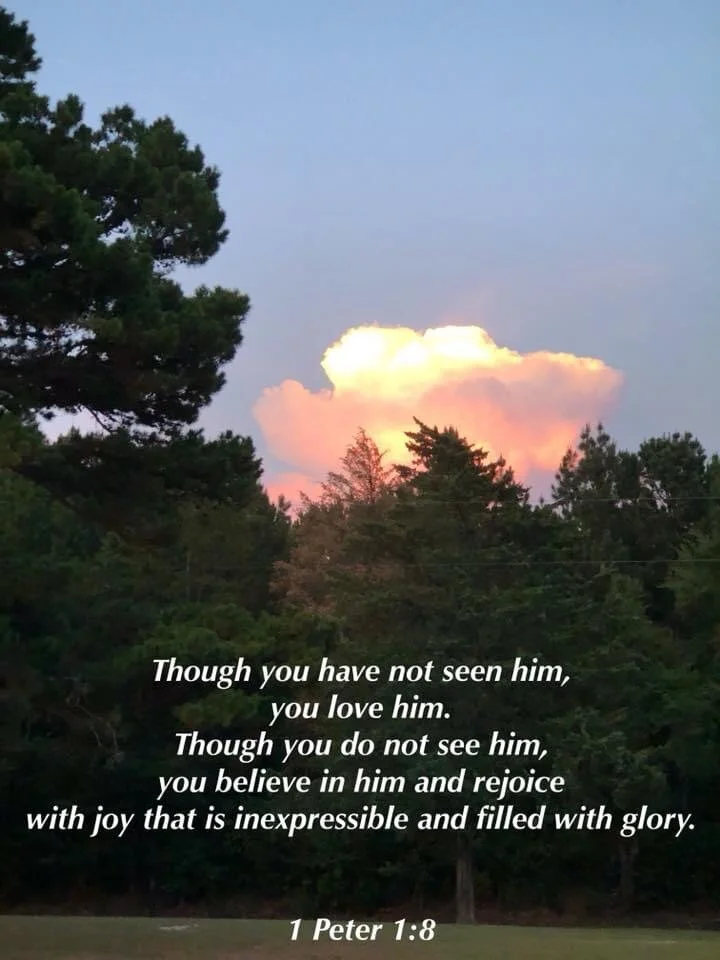 “Though you have not seen him, you love him. Though you do not see him, you believe in him and rejoice with joy that is inexpressible and filled with glory.”