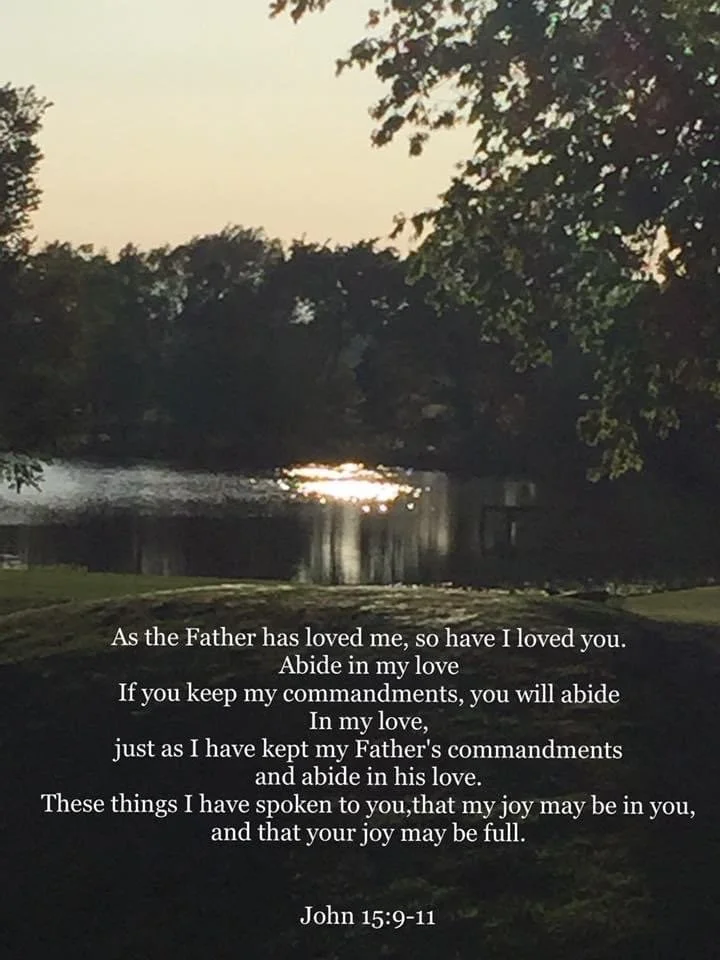 “As the Father has loved me, so have I loved you. Abide in my love. If you keep my commandments, you will abide in my love, just as I have kept my Father's commandments and abide in his love. These things I have spoken to you, that my joy may be in you, and that your joy may be full.”