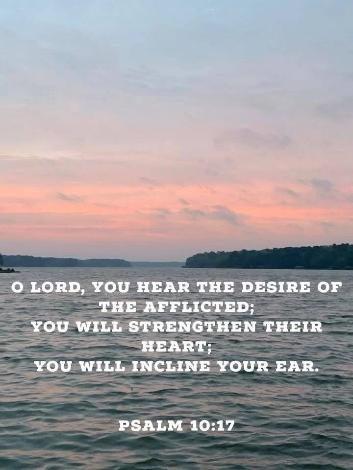“O LORD, YOU HEAR THE DESIRE OF THE AFFLICTED; YOU WILL STRENGTHEN THEIR HEART; YOU WILL INCLINE YOUR EAR.”